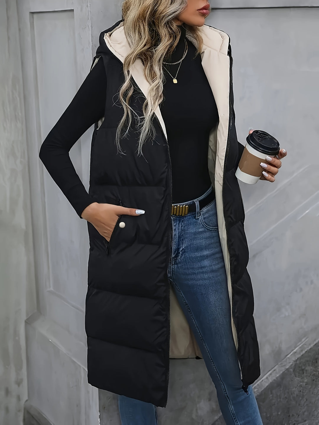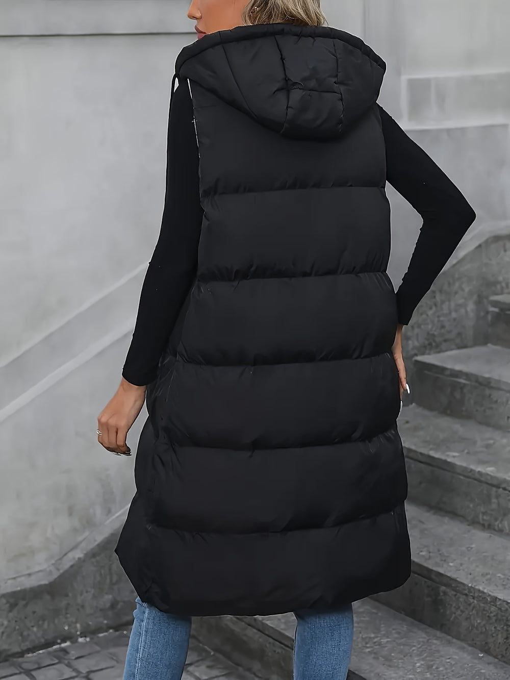 Damen langer ärmelloser Kapuzenmantel